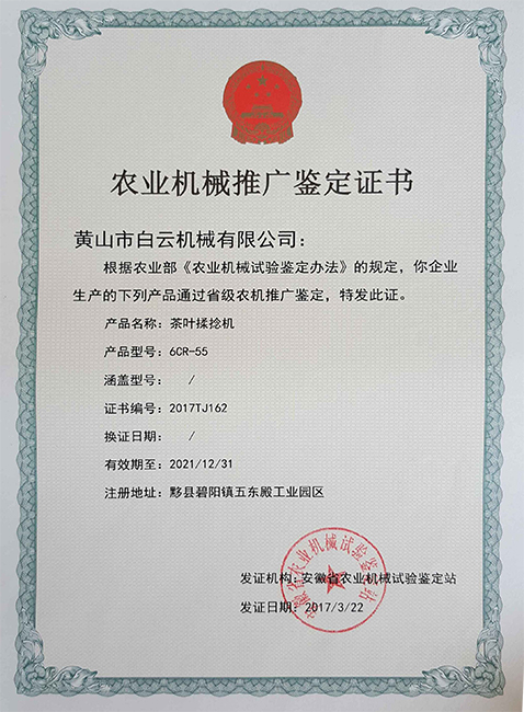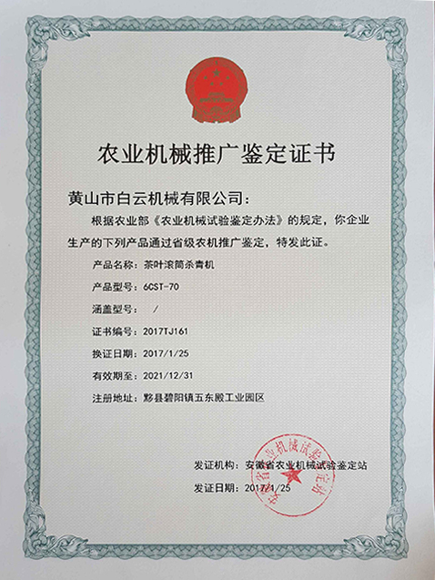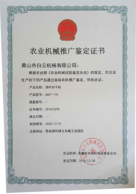 茶叶炒干机-鉴定证书